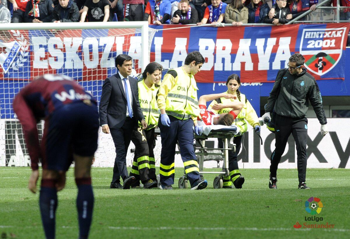 Duarte tuvo que salir del terreno de juego en camilla y no pudo regresar, aunque la jugada se presentó en el cierre del duelo.