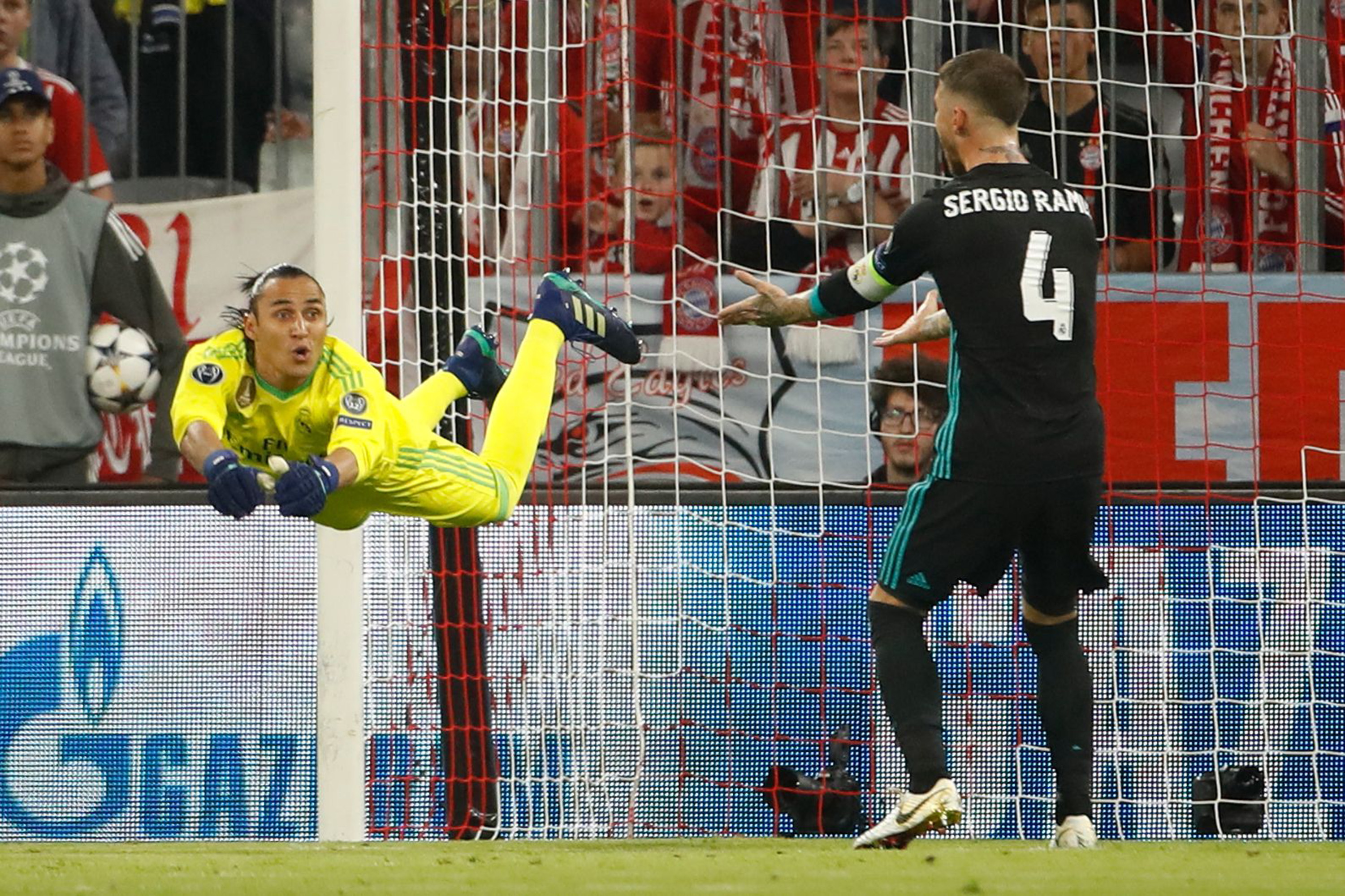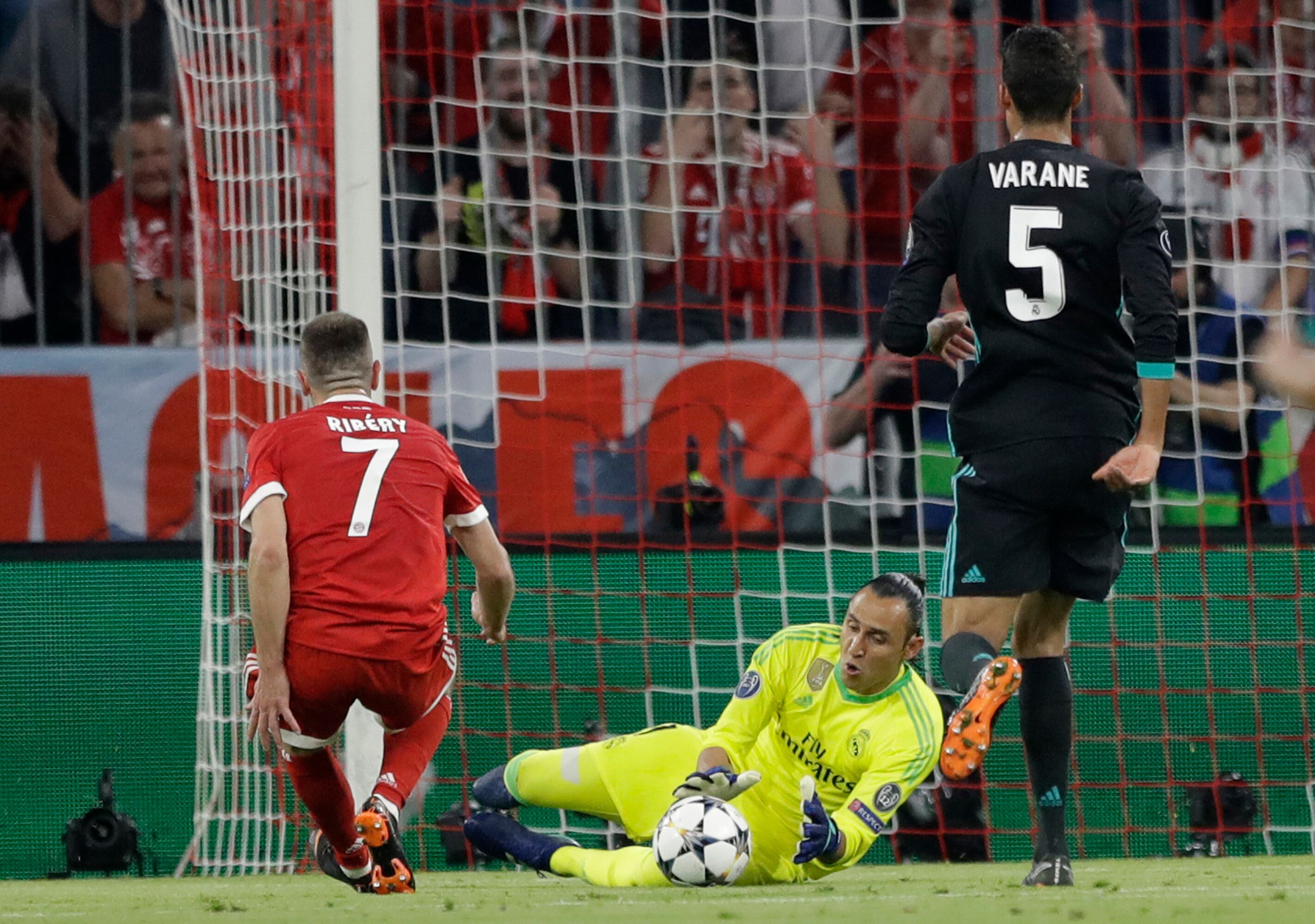 En la primer anotación del Bayern, el lateral derecho Joshua Kimmich se escapó por su banda y cuando entró en el área rival en vez de centrar sacó un disparo al palo izquierdo para marcar. Keylor intentó anticipar el centro y no pudo reaccionar.
