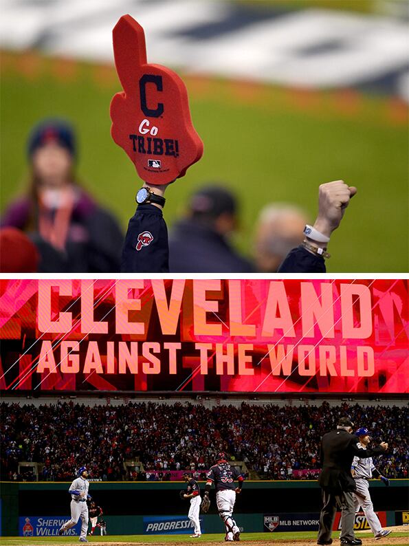 "Es Cleveland contra el mundo", dijo James cuando los Cavaliers recibieron sus anillos de campeones de la NBA en el Quicken Loans Arena. Apenas a un par de centenar de metros de distancia, se encuentra el Progressive Field, hogar del otro equipo de Cleveland, los Indios del béisbol.