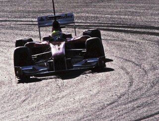 Entonces, un resorte salido del coche de su compatriota Rubens Barrichello lo golpeó en el casco y lo dejó inconsciente.