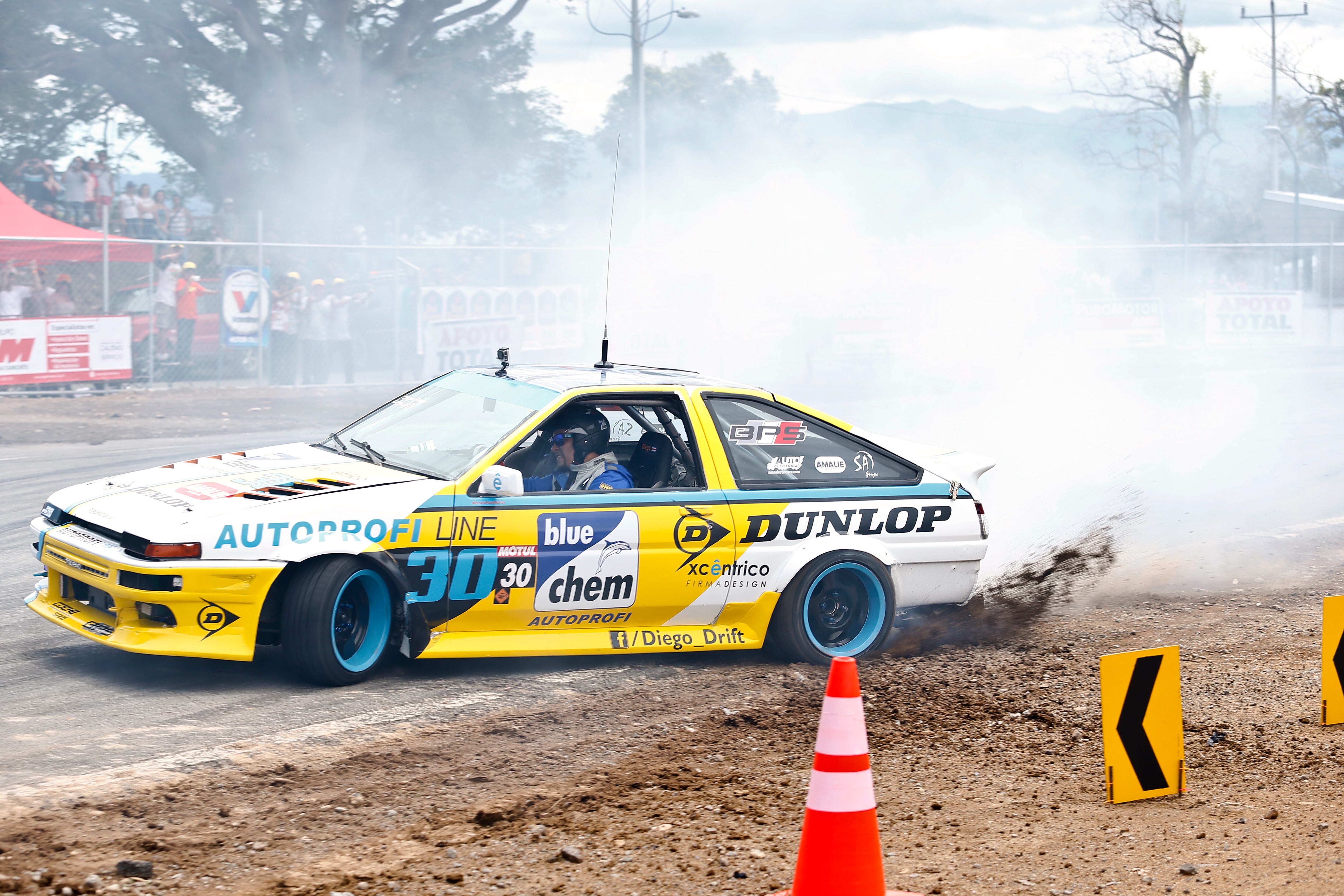 Acuña sacó lo mejor de su Toyota Corolla y pese a la lluvia que cayó en la parte final de la competencia, se robó los aplausos de los presentes, en una competencia reñida y espectacular por el derrape de los vehículos en cada curva.
