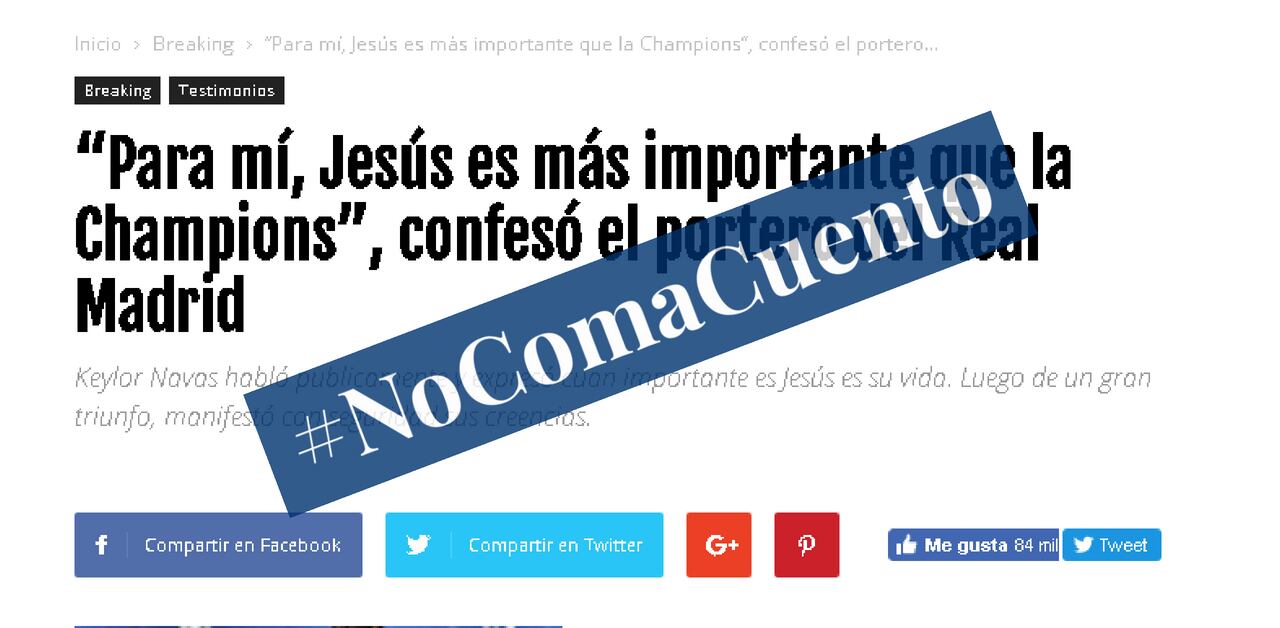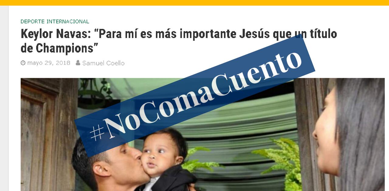 La entrevista fue publicada el 25 de mayo, es decir antes de la final de Kiev en que el Real Madrid logró el título de Champions League y aunque Navas sí hace referencia a la importancia de la religión en su vida, nunca menciona las frases con las que ambas páginas titulan y que están compartiendo en redes sociales.