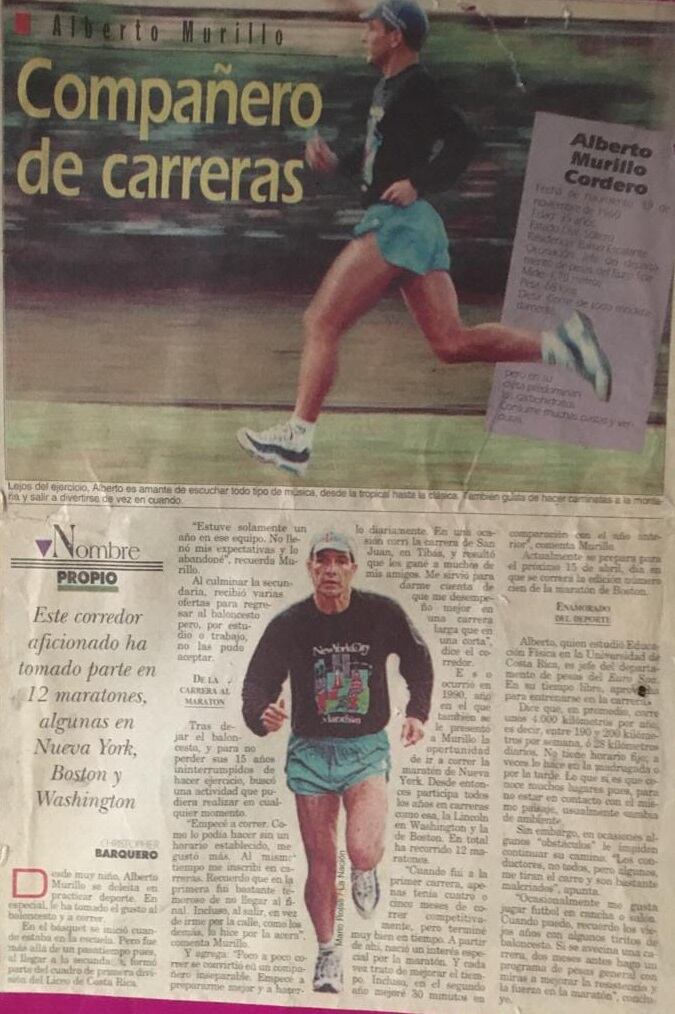 Murillo tiene noción y guarda evidencia de sus maratones, sin embargo, hay dos ediciones de la Maratón Internacional de Costa Rica que no indican en qué año las corrió y no lo recuerda.