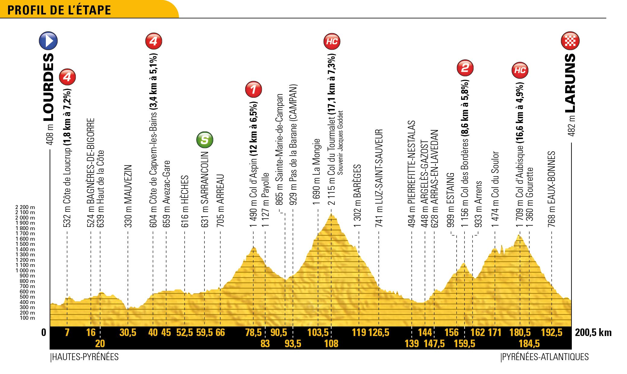Será un ‘2+1’ de montañas en este último bloque del Tour, ya que habrá una jornada llana -final en Pau, etapa 18, jueves 26- en medio de las últimas ascensiones de la carrera.