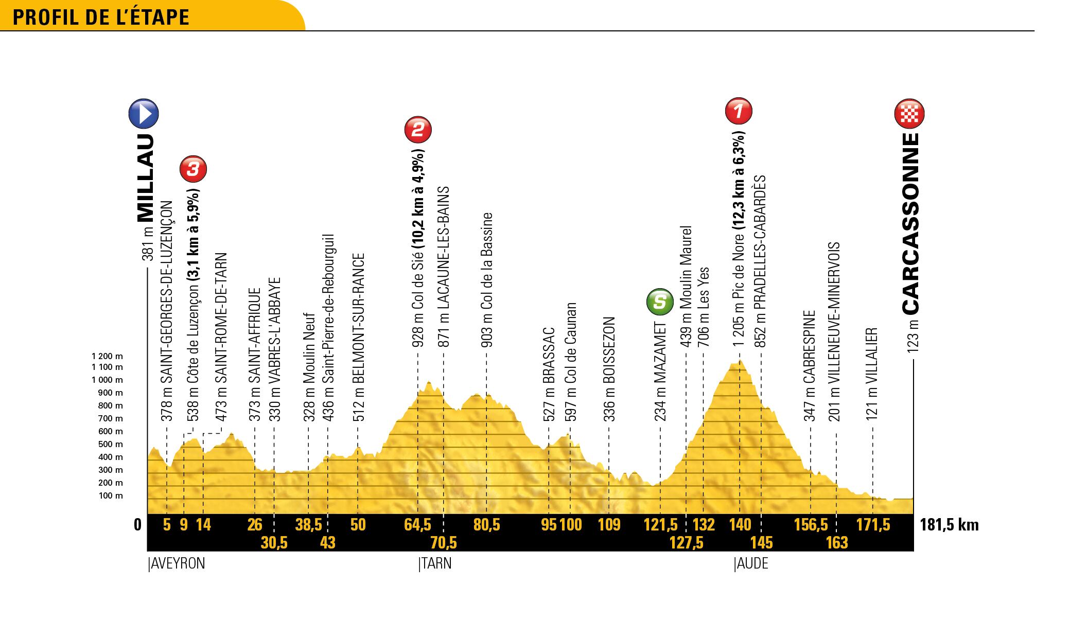 Antes del segundo descanso y los Pirineos, el Tour tocará brevemente el Macizo Central con una llegada muy habitual en Mende (segunda categoría), el sábado 21, y visitará también una subida occitana lejana a la cordillera principal pero muy interesante: el Pic de Nore (primera categoría), el domingo 22.