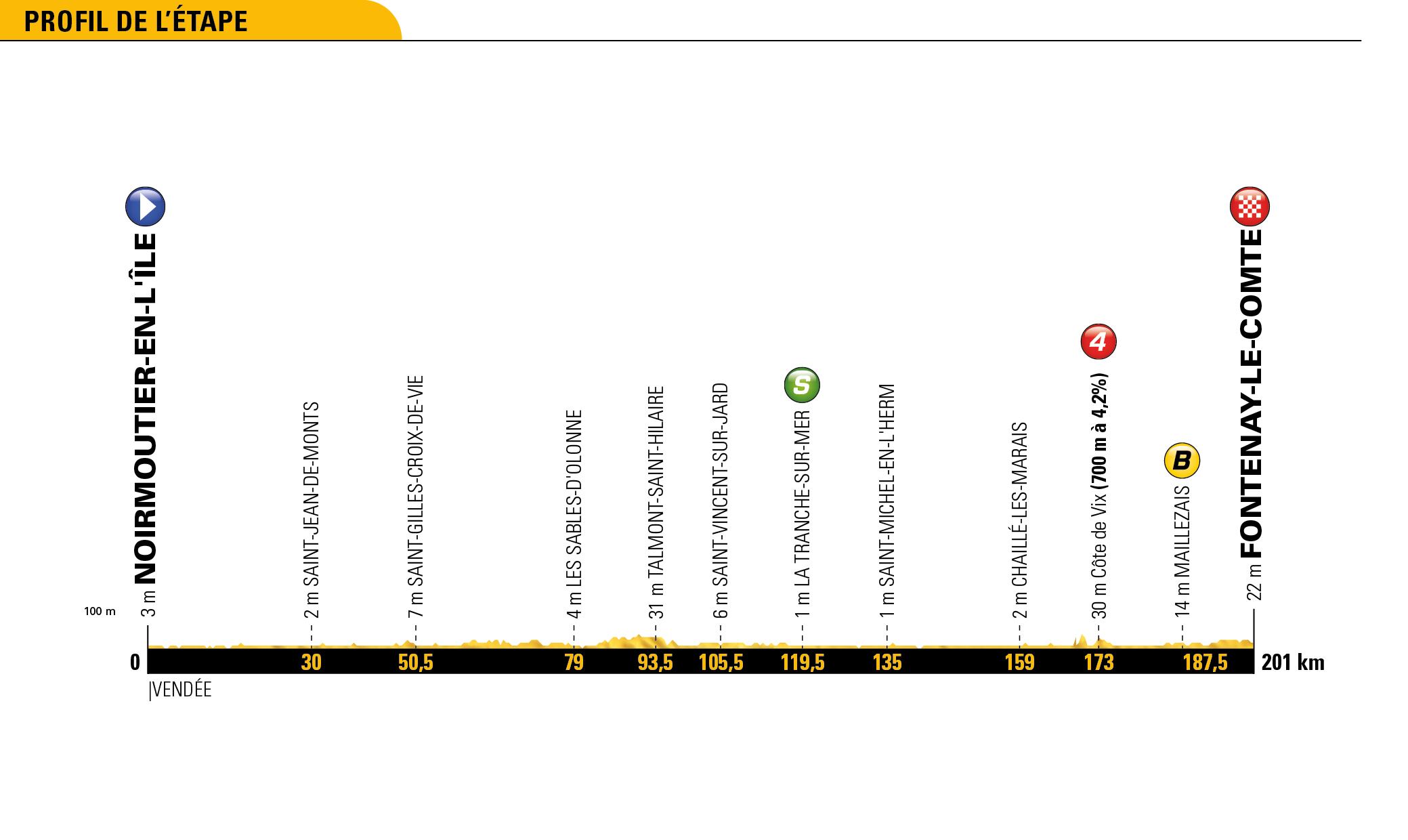 Por tercera vez en trece años (2005, 2011), el Tour de Francia partirá desde el Vendée y rodará en sus primeras seis jornadas cerca del mar, en las regiones del País del Loira y la Bretaña.