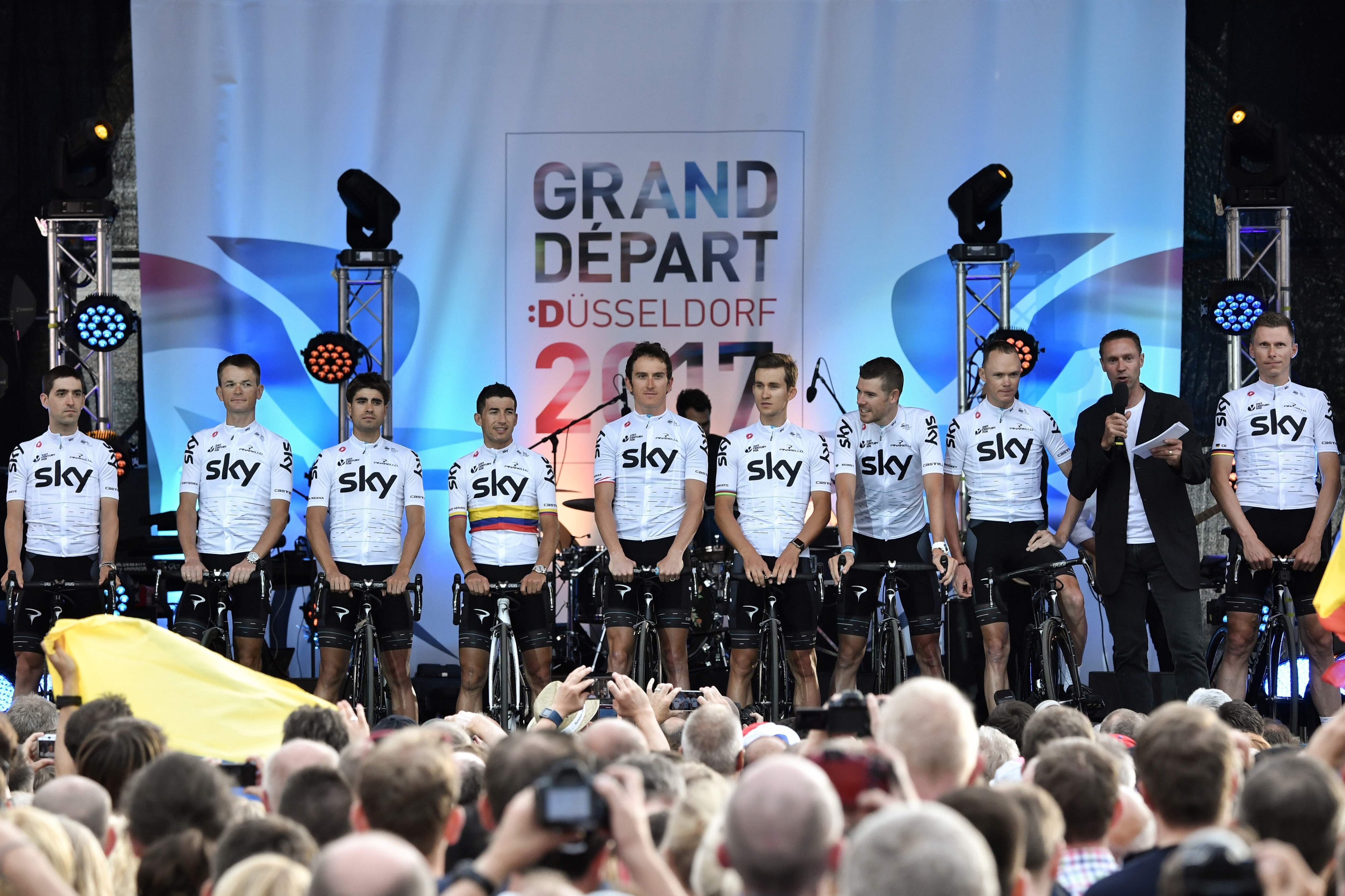 Fabio Aru (Astana) saldrá a las 10:27 a. m.; Alberto Contador (Trek) lo hará a las 10:29 a. m., Nairo Quintana a las 10:30 a. m. y el campeón defensor será el último hombre en partir, a las 10:32 a. m.