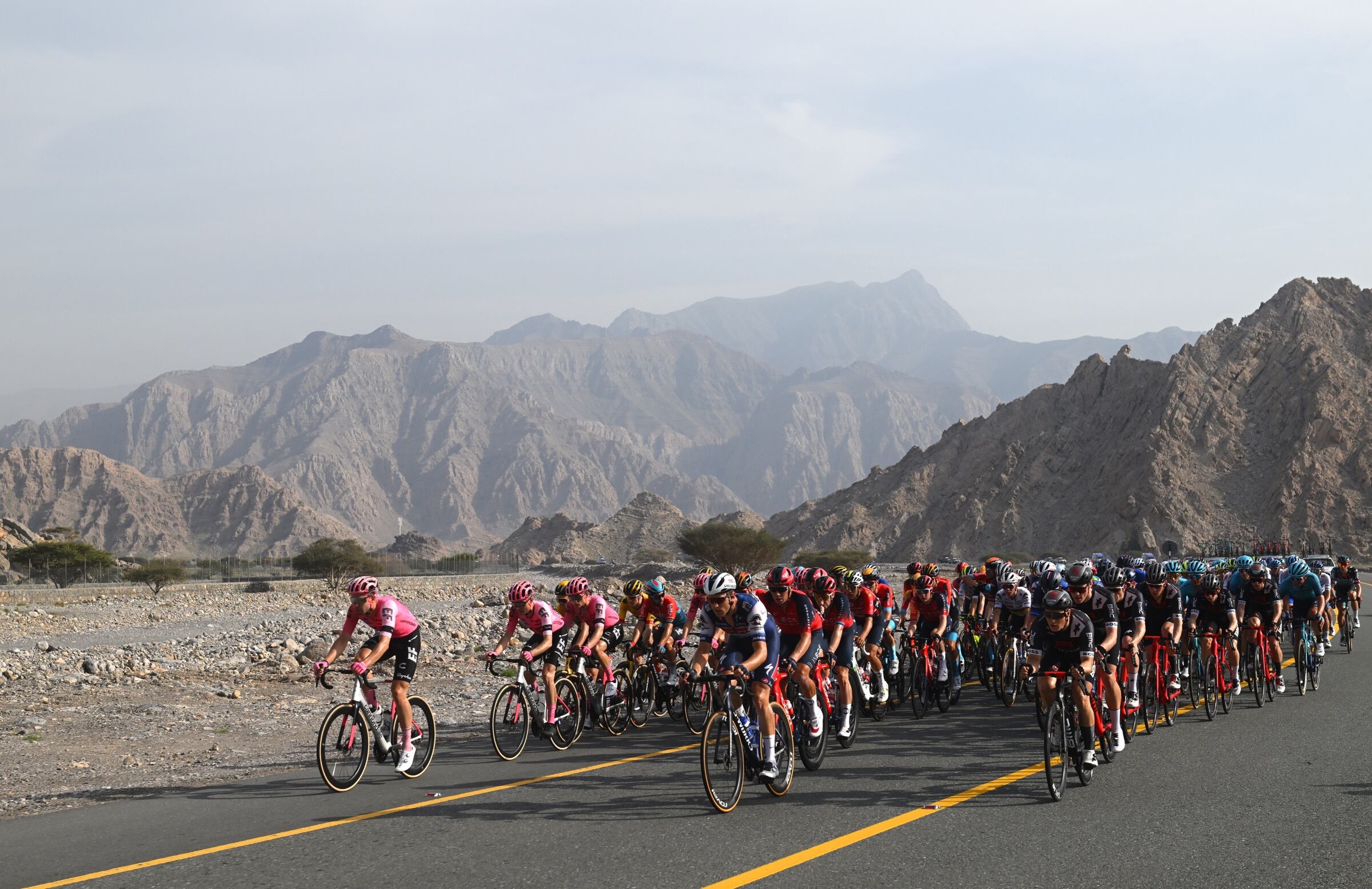 El pelotón había alcanzado poco antes al español Oier Lazkano (Movistar), que tenía casi dos minutos y medio de ventaja al comienzo del ascenso del Jebel Jais, tras escaparse durante cien kilómetros a una media cercana a los 40 km/h.