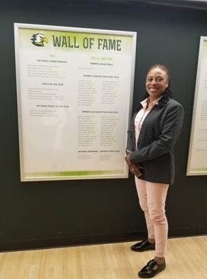 También compitió con el equipo de atletismo de Life University entre 1997-1999. Fue seleccionada en cuatro ocasiones en 1997 y 1998 en atletismo al aire libre y en 1998 y 1999 en atletismo bajo techo, llegando a ser nombrada la mejor atleta en pista bajo techo de la NAIA (National Association of Intercollegiate Athletics) en 1998.