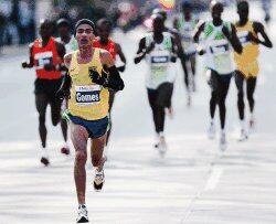 El brasileño, de 29 años, sostuvo una fuerte batalla a lo largo del trayecto contra Tergat y el también keniano Stephen Kiogora, segundo de la carrera (2:10:06).
