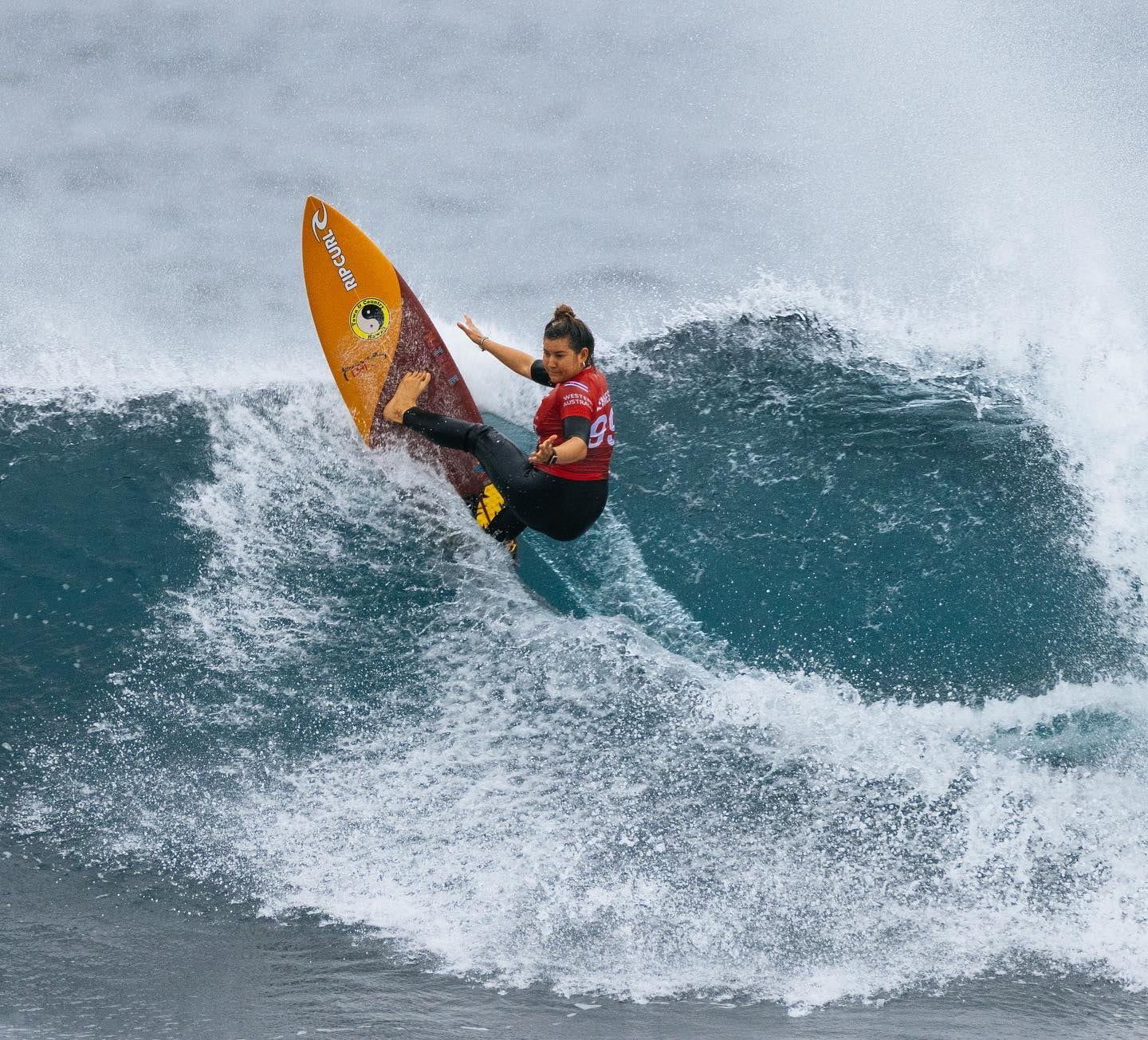 Brisa, pese a las difíciles condiciones por el fuerte viento que complicó la lectura de la ola y la realización de maniobras, de acuerdo al sitio especializado Duke, ganó el primer heat 1 del evento con un combinación de 8.96, seguida por Courtney Conlogue de los Estados Unidos con 8.50 y Bettylou Sakura Johnson de Hawái con 5.20.