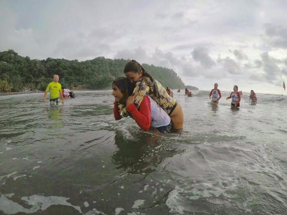 Salvada por amiga. Una vez en la playa fue atendida por Selena Cubero, quien la ayudó a salir del agua. Lisbeth y Selena son muy amigas y fueron compañeras durante un curso de salvavidas impartido en Jacó por Waterwoman Rescue y comparten también en la Academy Laguna Surf School.