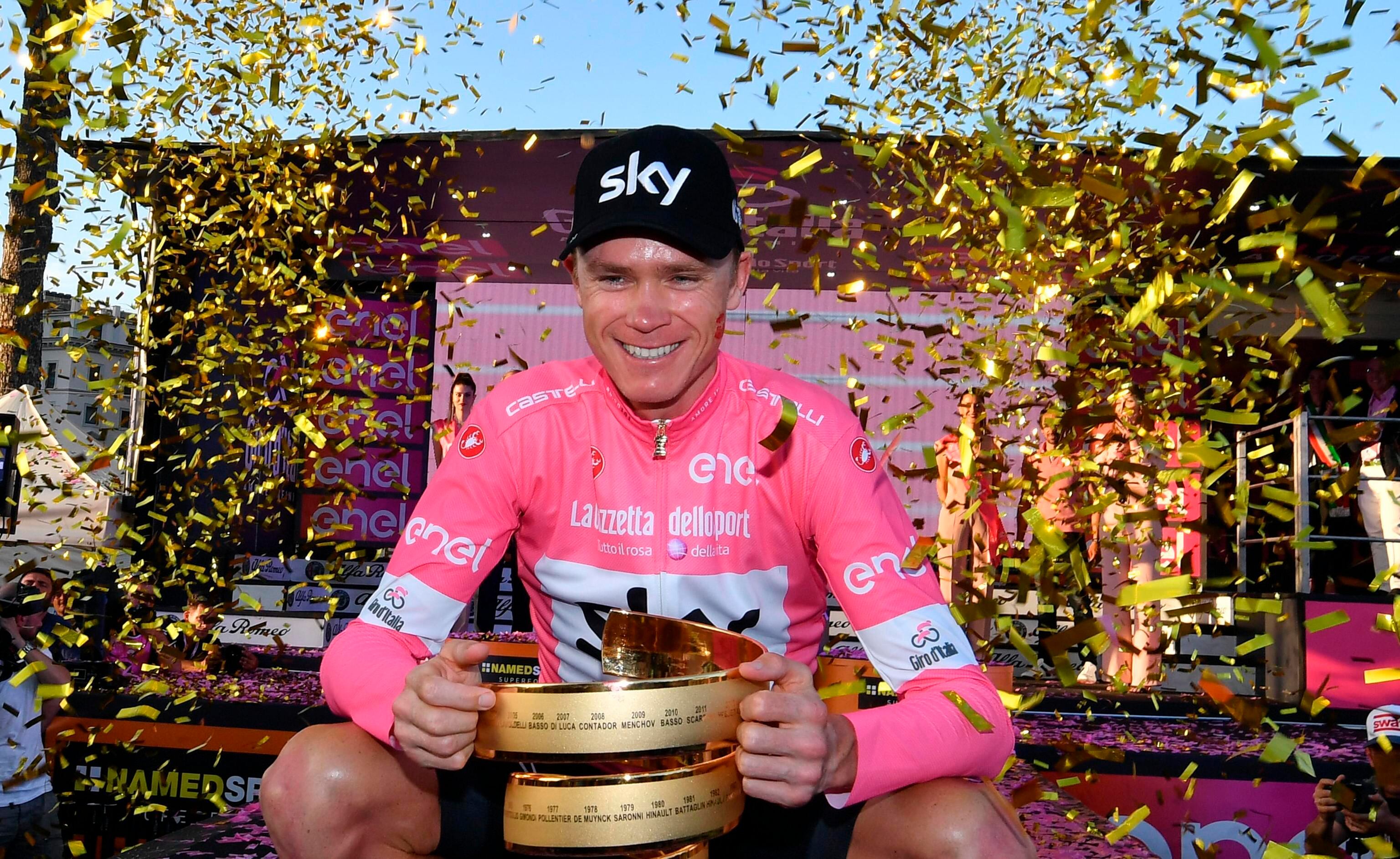 “Es grandioso respirar el ambiente aquí en Roma. No quedé decepcionado en lo absoluto por el público ni los monumentos. Necesito tiempo para meditar, pero esta carrera ha sido increíble. Para un ciclista, es un sueño tener las camisetas de líder de los tres Grand Tours. Me sigo pellizcando. No puedo creer que estoy aquí con la maglia rosa”, dijo Froome tras la victoria.