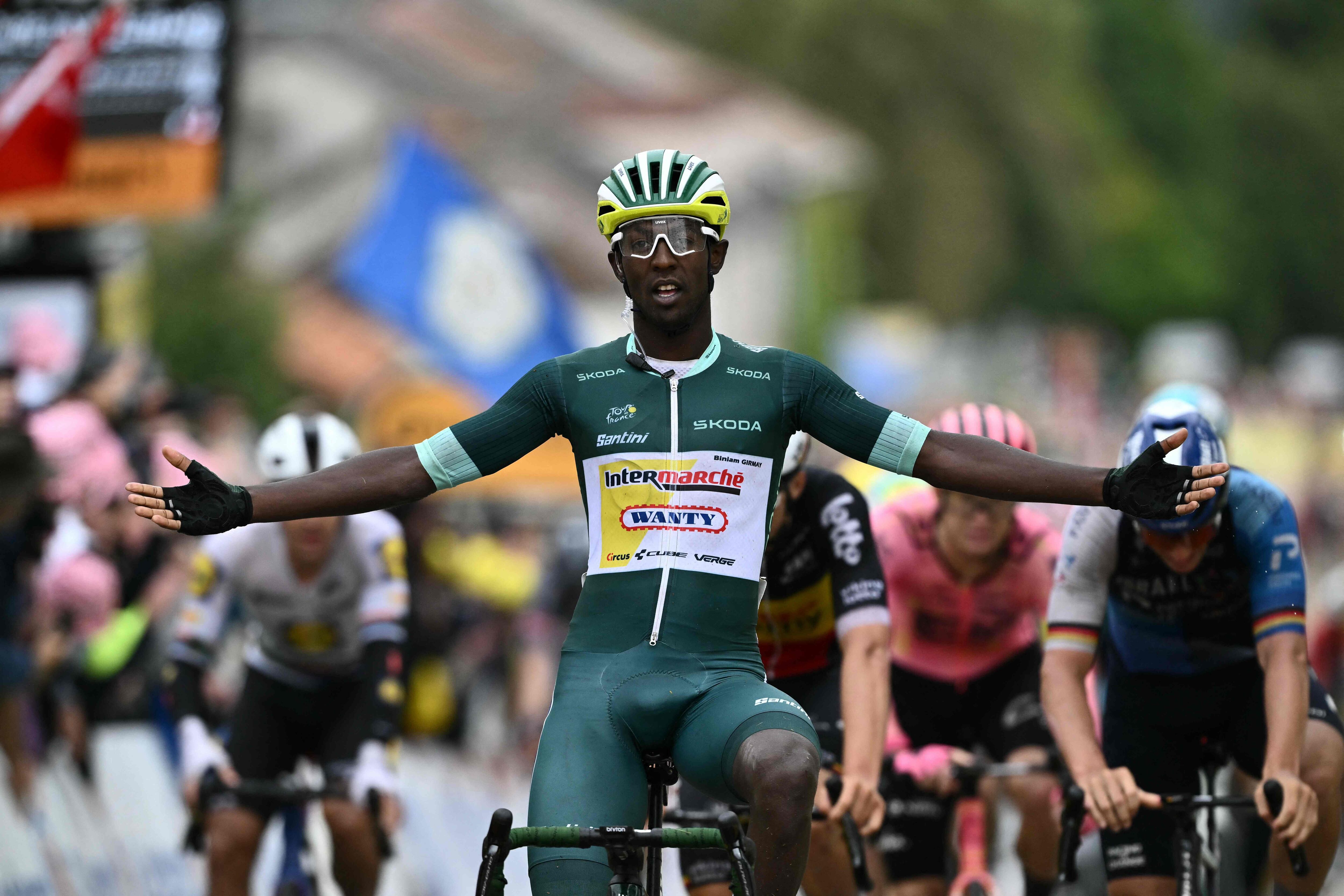 Ya vencedor de la tercera etapa el lunes en Turín, el corredor del equipo Intermarché aventajó a dos belgas, Jasper Philipsen y Arnaud De Lie, para consolidar su maillot verde de la regularidad. El oriundo de Eritrea es el primer africano que lidera esta clasificación anexa.