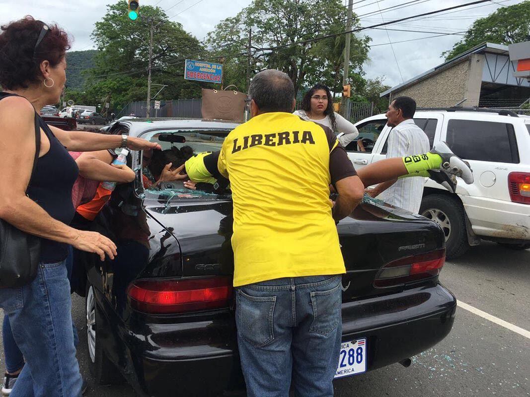 La ciclista juvenil Mónica Montero sufrió un fuerte accidente este viernes durante la Vuelta a Guanacaste, luego de colisionar con un vehículo y quedar incrustada en el parabrisas trasero.
