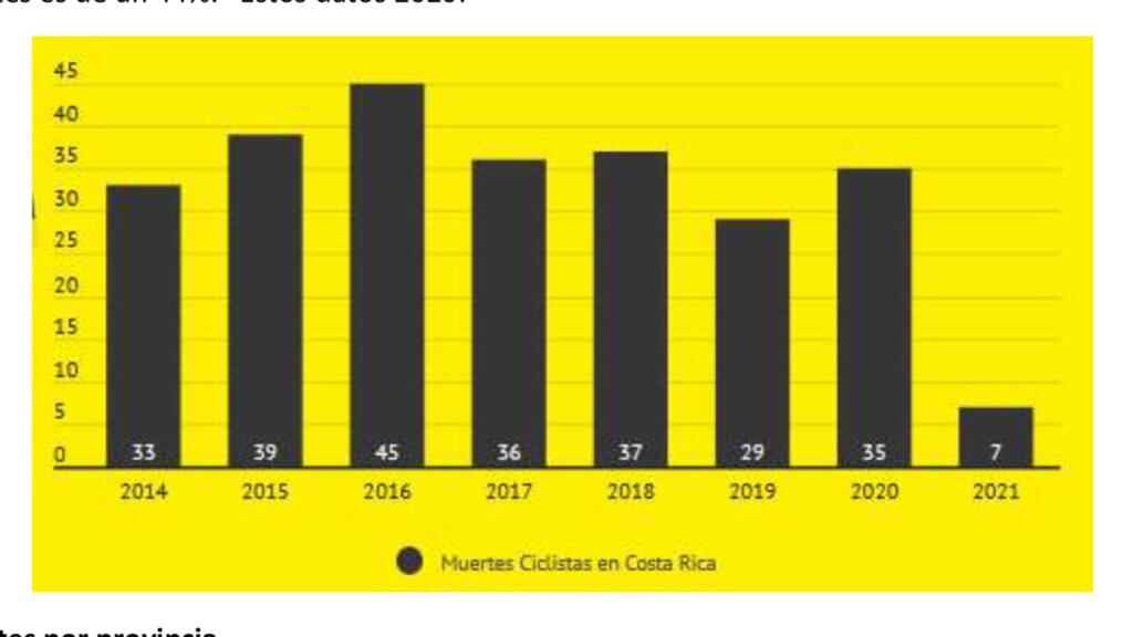 “En los últimos meses hemos implementado la Ruta de la Movilidad y Seguridad Ciclística (eventos para concientizar). La primera fue entre Lindora y Puerto Viejo en Limón con el fin de generar esa conciencia entre los actores de la red vial costarricense. Limón fue nuestro primer destino porque fue la provincia que registró más muertes en el país en el 2020. En total fueron 12, representando el 34% (de los fallecidos en todo el país), lo que nos llama a tener consciencia de lo que está sucediendo y debemos cambiar”, agregó López.