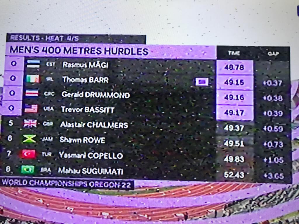 Gerald Drummond aceleró al final, apretó el paso y cerró de gran forma para clasificar a las semifinales de los 400 metros con vallas del XVIII Campeonato Mundial de Atletismo Eugene 2022, en Oregon, Estados Unidos.