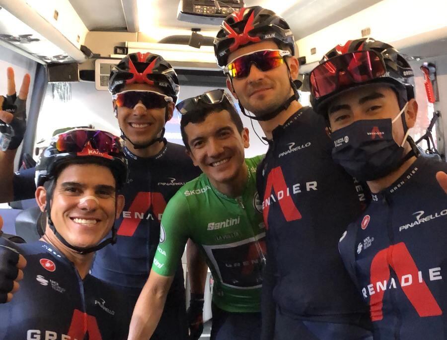 A falta de menos de 30 kilómetros para el final había dos noticias en Ineos, una mala y una buena: mientras que se registraba el abandono del joven colombiano Brandon Rivera, el tico Andrey Amador y el ecuatoriano Richard Carapaz atacaron.