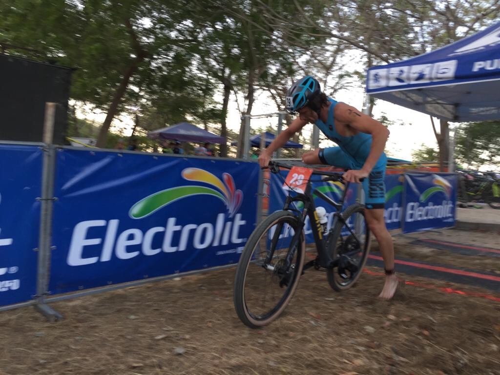 Al llegar el mountain bike, que se realizó en un circuito muy técnico y demandante, con constantes ascensos y descensos, Leo pudo salir airoso y concluyó como líder, ampliando su ventaja a 2:45 minutos con respecto a sus perseguidores en el momento de la transición.