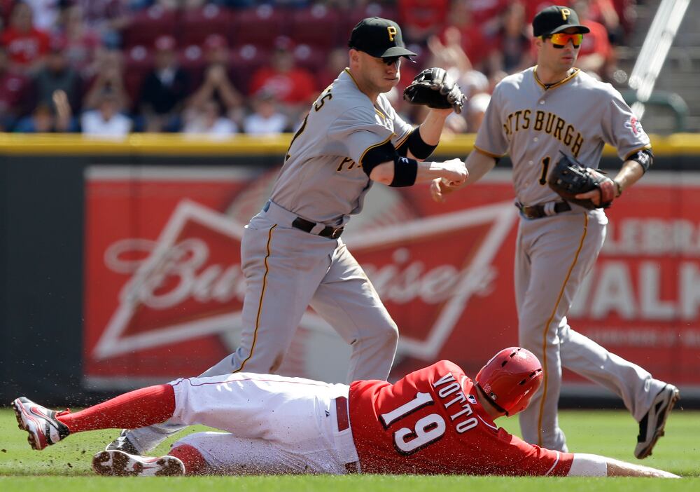 Los Piratas desataron feroz ofensiva de 13 imparables, seis de ellos jonrones y dos de esos vuelacercas firmados por Neil Walker, para apalear este sábado 8x3 a los Rojos de Cincinnati.