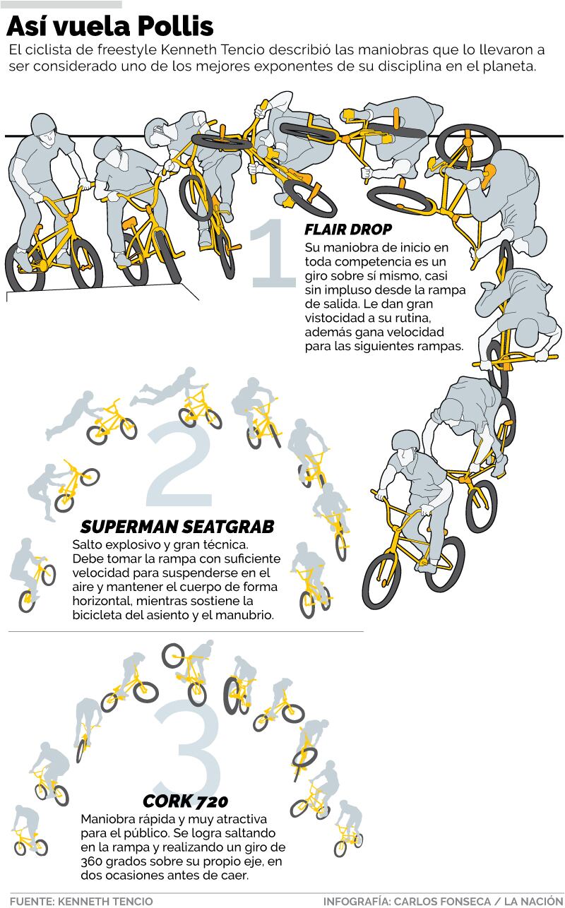 Sorprender a los jueces, innovar en sus trucos y arriesgar más que los otros competidores, fueron las claves para que el ciclista Kenneth Pollis Tencio logrará el subcampeonato mundial de la Unión Ciclística Internacional (UCI) en la modalidad de BMX freestyle, el pasado 11 de noviembre, en el Mundial realizado en China.