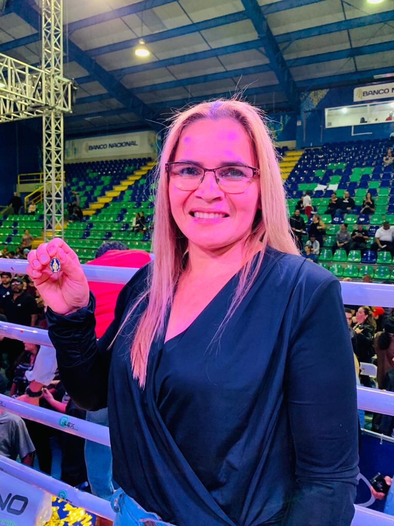 Azucena, al borde del ring en el Gimnasio BN Arena de la Ciudad Deportiva Heiner Ugalde de Hatillo, observó sentada la pelea del sábado, donde Yoka retuvo el cinturón de las 105 libras de la Federación Internacional de Boxeo (FIB), al derrotar a la filipina Carleans Rivas por nocaut, en el sexto asalto.