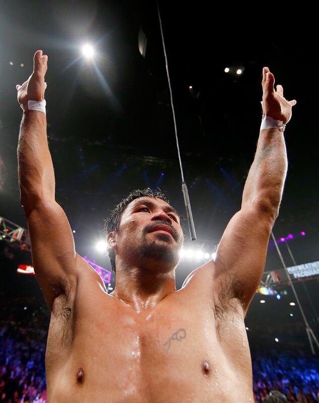 Según los asesores de Pacquiao, el excampeón del mundo del peso wélter sufre un desgarro en el manguito rotador de su hombro derecho, lo que requiere una operación, y el proceso de recuperación podría extenderse por un año.