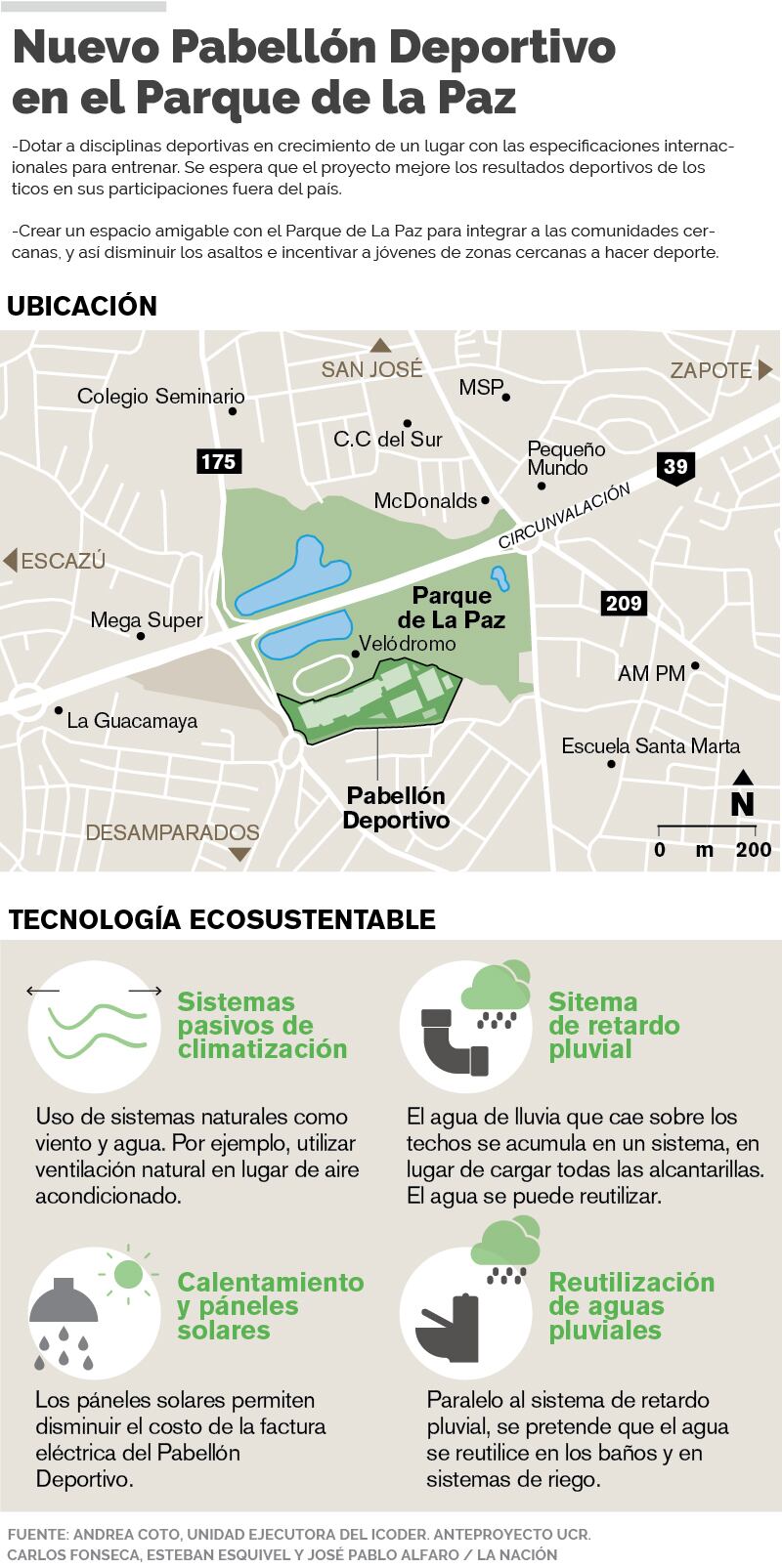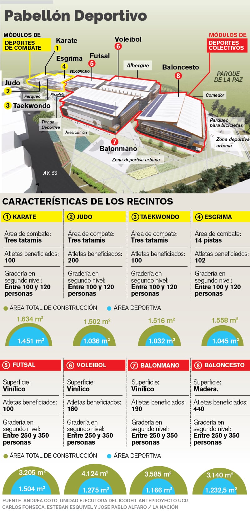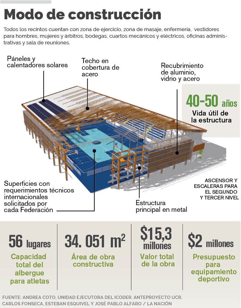 La ingeniera Andrea Coto, encargada de la Unidad Ejecutora del Icoder, manifestó que la obra solo cumple con lo necesario para que cada deporte tenga una infraestructura con los requerimientos necesarios para competir a nivel internacional.
