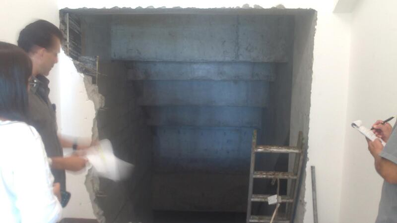 El boquete, de aproximadamente cuatro metros cuadrados, se abrió detrás de la gradería ubicada en el cuarto piso, y lo hizo Luis Miguel Herrero, encargado de Gestión de Obras del Icoder.
