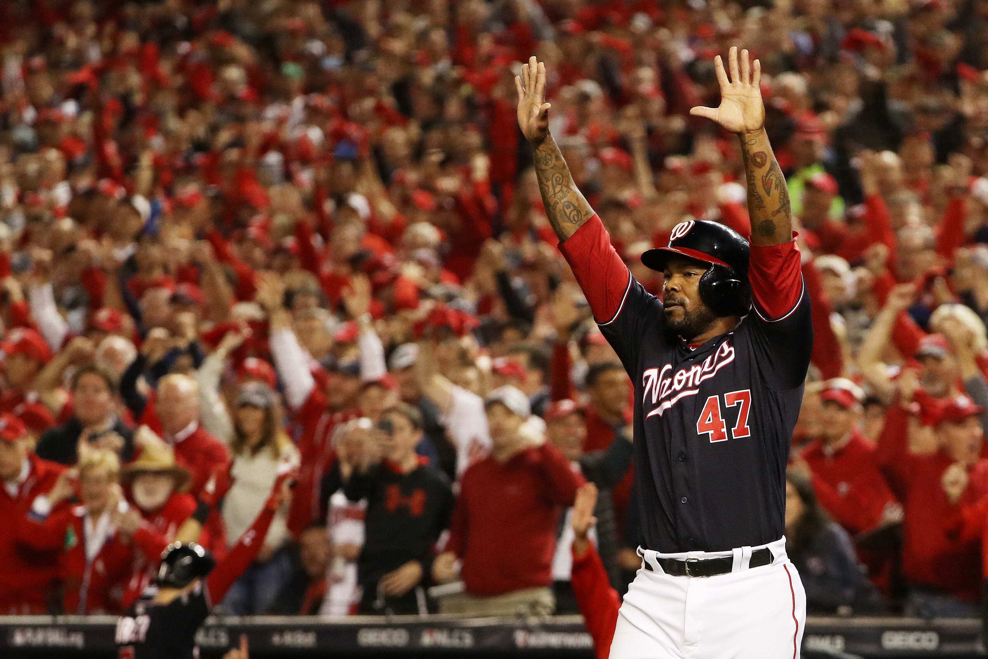 Los Nacionales, de ganar la Serie Mundial, se convertirían en el sexto equipo que llega a los playoffs como comodín y se lleva la corona junto a los Marlins (1997 y 2003), Angelinos (2002), Medias Rojas (2004), Cardenales (2011) y Gigantes (2014).
