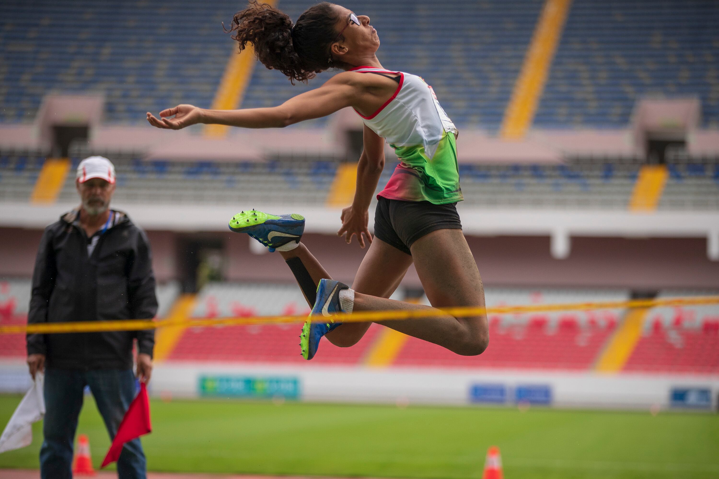 La nicoyana, quien se impuso en salto triple el miércoles, se coronó este viernes en salto largo tras lograr en su primer intento cinco metros y 28 centímetros, venciendo a las representantes de Alajuela Valeria Oviedo (4,98 metros) y Kelsie Juárez (4.95 metros), quienes se dejaron la plata y el bronce respecticamente.