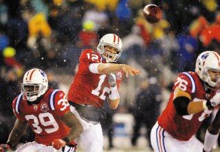 El otro recibidor estrella del equipo, Randy Moss , atrapó tres envios de anotación y 129 yardas.