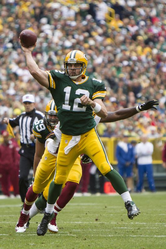 Otros partidos. El mariscal Aaron Rodgers tuvo un partido fenomenal para sufragar las deficiencias de la defensa de los Empacadores y guiar a Green Bay a la victoria, por 38-20, sobre los Pieles Rojas.