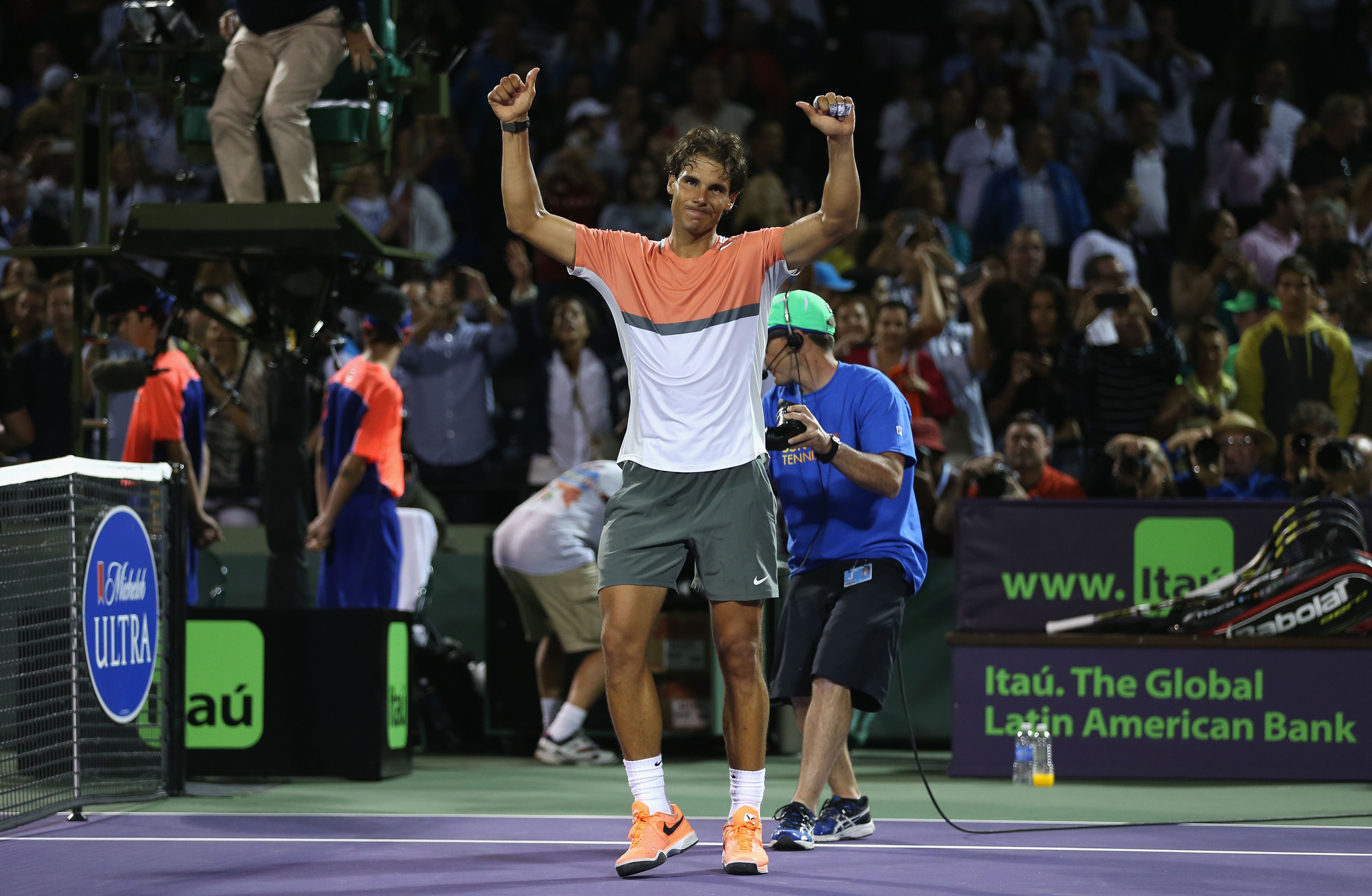 El español Rafael Nadal, número uno mundial, se impuso este jueves en cuartos de final al canadiense Milos Raonic en un reñido encuentro con parciales de 4-6, 6-2, 6-4 y consiguió boleto a las semifinales del torneo Masters 1000 de Miami.