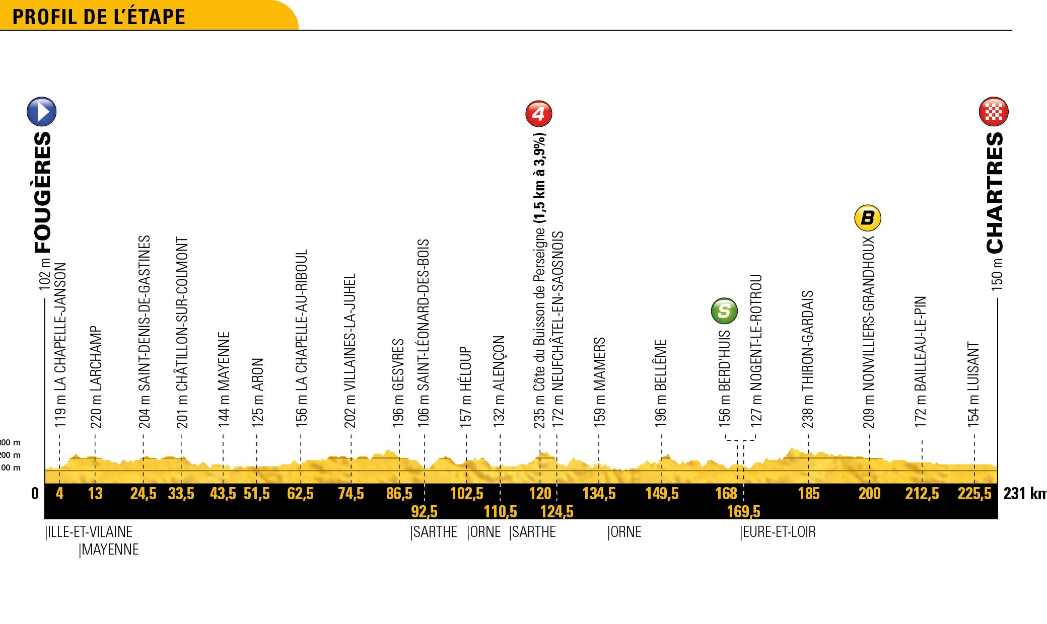 Este viernes se correrá la sétima etapa del Tour de Francia, con 231 kilómetros planos entre Fougères y Chartres.