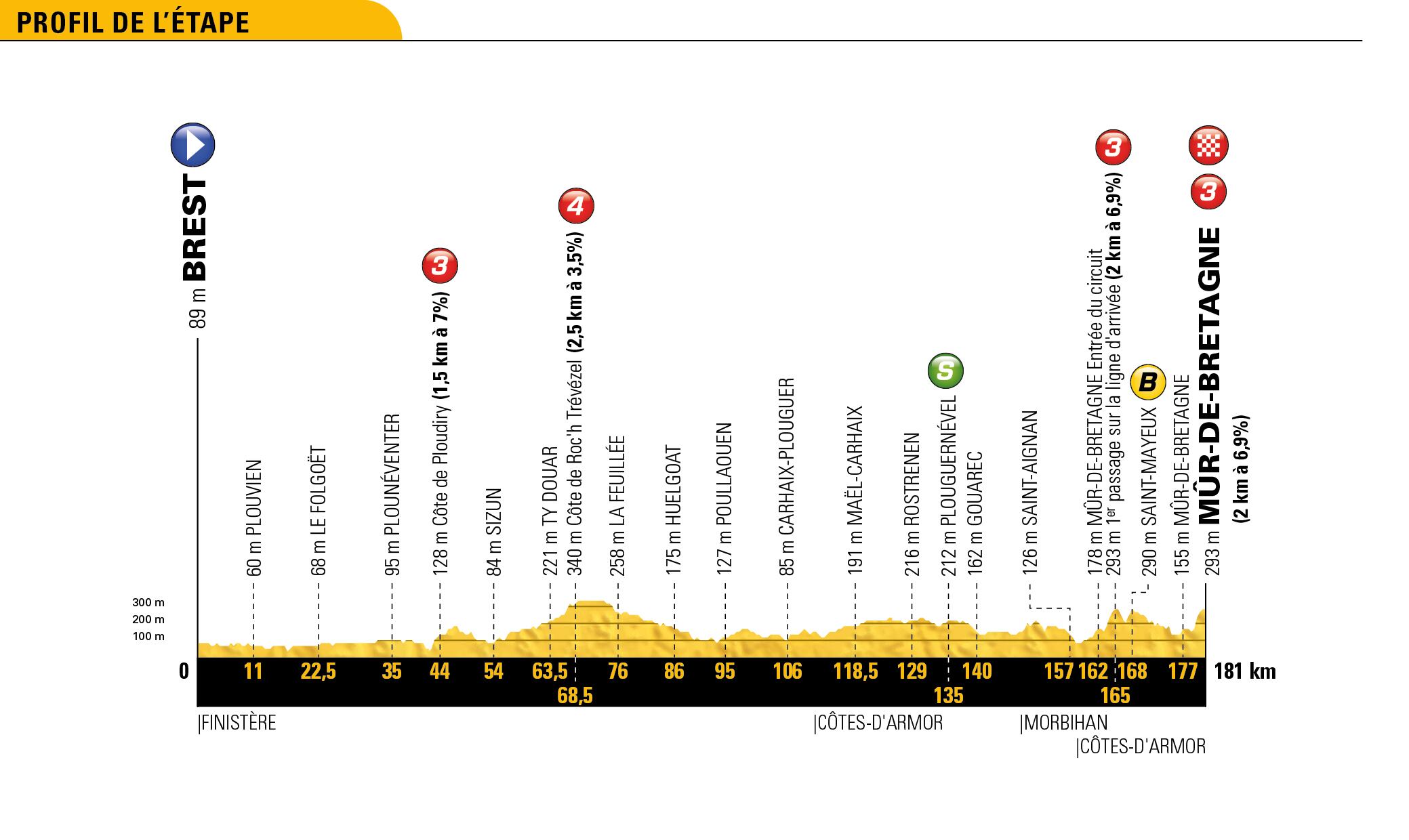 La jornada de 181 kilómetros entre Brest y el Muro de Bretaña, de este jueves, dejó buenas sensaciones para los integrantes de Movistar Team, porque en la primera pincelada de montaña, el británico Chris Froome (Sky) cedió algunos segundos con respecto a varios favoritos, entre ellos Alejandro Valverde y Mikel Landa.