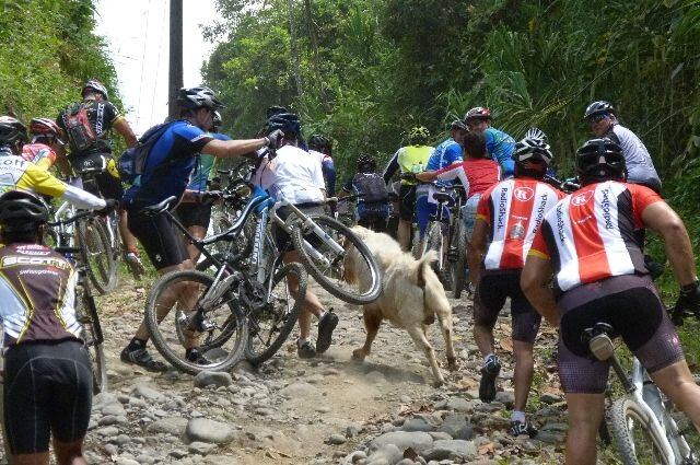 El espectáculo divirtió a unos, preocupó otros y alivió a la mayoría cuando después de 7 km de correr detrás de los ciclistas, el animal se cansó y se echó en un potrero.