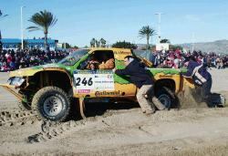 En la misma categoría auto, la dupla brasileña Klever Kolberg-Roldan Lourival (Mitsubishi) no pudo repetir la actuación en Narbona (decimocuartos), obteniendo en Castellón la trigesimotercera posición en la etapa, a 1:05 del ganador sudafricano, pero en decimoctava ubicación en la clasificación general a 3:05 de Peterhansel.
