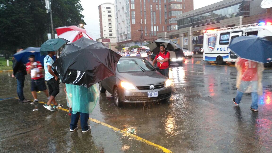 Los aficionados van ingresando al Estadio Nacional pese a la lluvia que sigue afectando La Sabana.