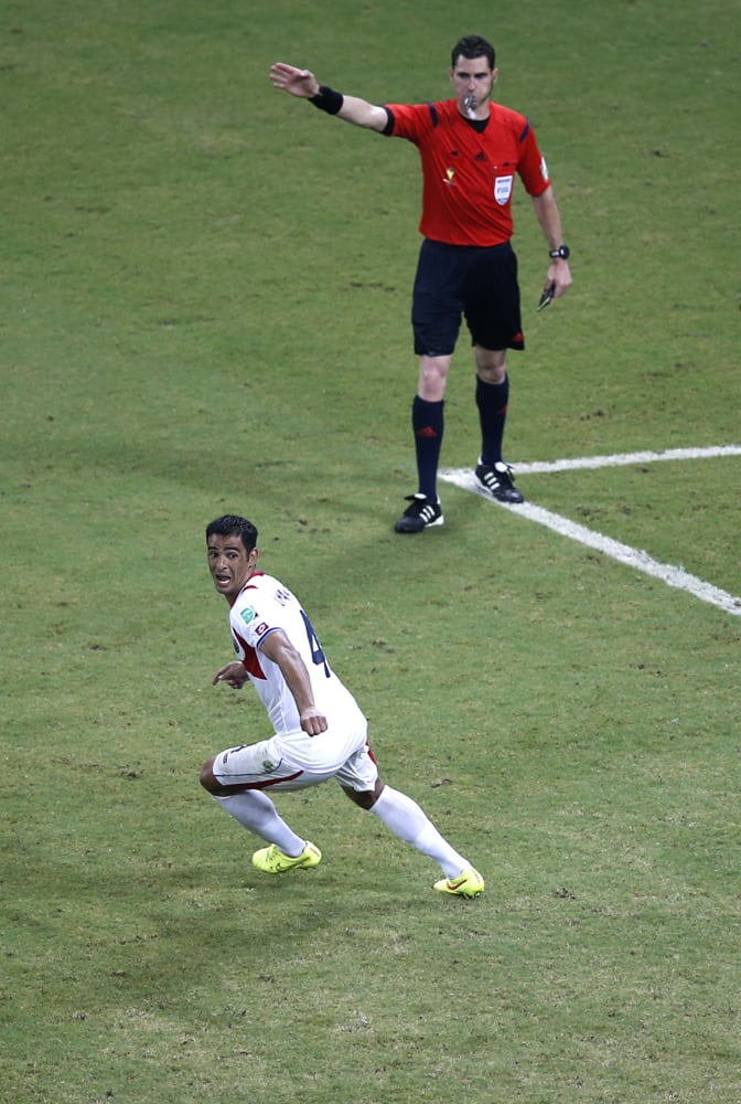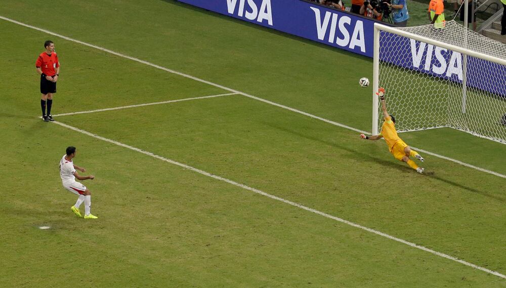 Michael Umaña toma la pelota y la coloca en el manchón de penal del Arena Pernambuco, en la ciudad brasileña de Recife. Resopla y toma carrera. Costa Rica, casi entera, contiene la respiración y vive uno de los momentos más tensos de su historia deportiva.