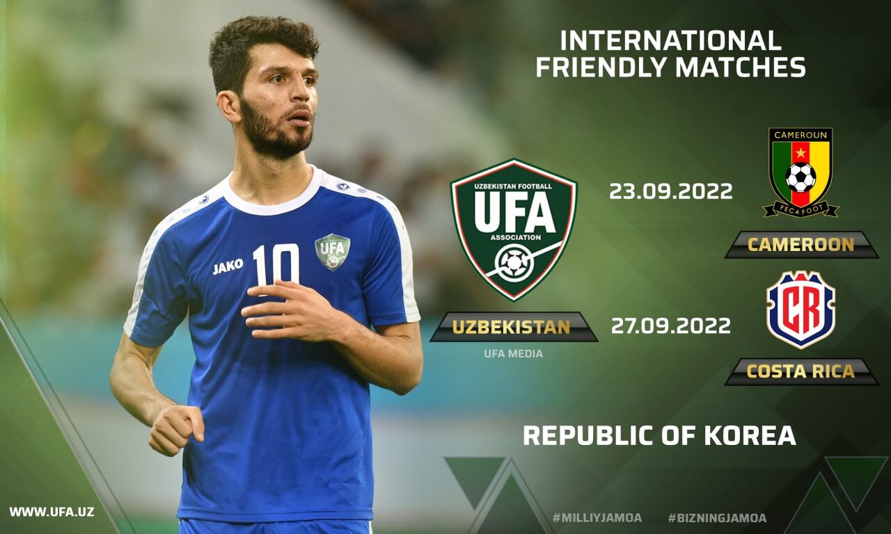 “Según el calendario de la AFC (Confederación Asiática de Fútbol), la selección nacional de Uzbekistán planea realizar un campo de entrenamiento en la República de Corea durante las fechas FIFA para selecciones nacionales en setiembre. Durante este campo de entrenamiento, nuestros representantes jugarán partidos amistosos con las selecciones de Camerún y Costa Rica, participantes de la Copa del Mundo 2022. Estos partidos se efectuarán los días 23 y 27 de setiembre”, destacó la Federación de Fútbol de Uzbekistán.