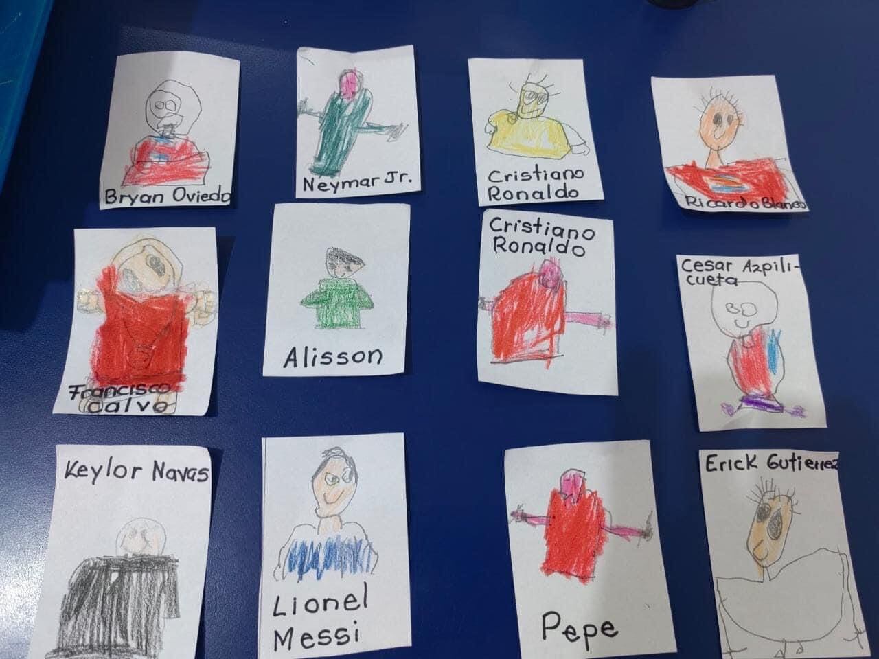 Pero la creatividad de esta docente de preescolar hizo lo suyo, y de alguna manera le ganó a la falta de recursos económicos de la mayoría de las familias de sus estudiantes. Víquez motivó a sus pequeños alumnos a dibujar a los jugadores.