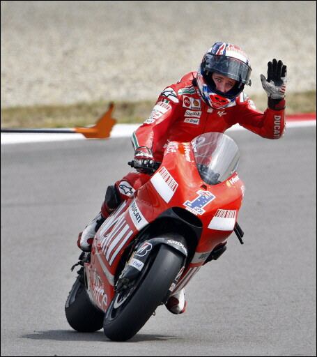 Stoner logró firmar la primera posición del día con autoridad, después de una caída en la segunda tanda y sin necesidad de finalizar la carrera, cuyo final siguió desde los boxes, con lo que muestra una gran autoridad y se perfila como favorito a subir a lo más alto en el podio alemán.