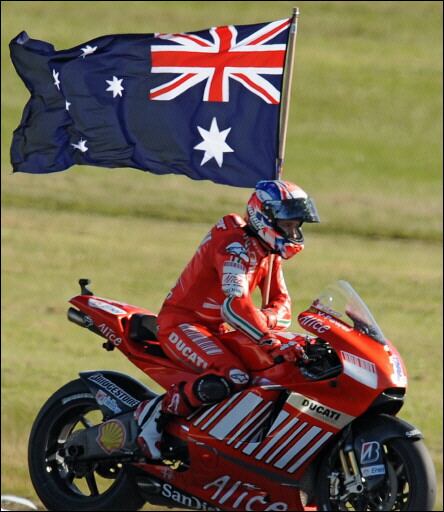Australia no dio muy buena suerte a los pilotos españoles, ya que Dani Pedrosa (Honda) se salió de la pista en la primera vuelta y no terminó la carrera, con lo que tiene ahora 25 puntos menos que Stoner en la lucha por el subcampeonato de la categoría reina.