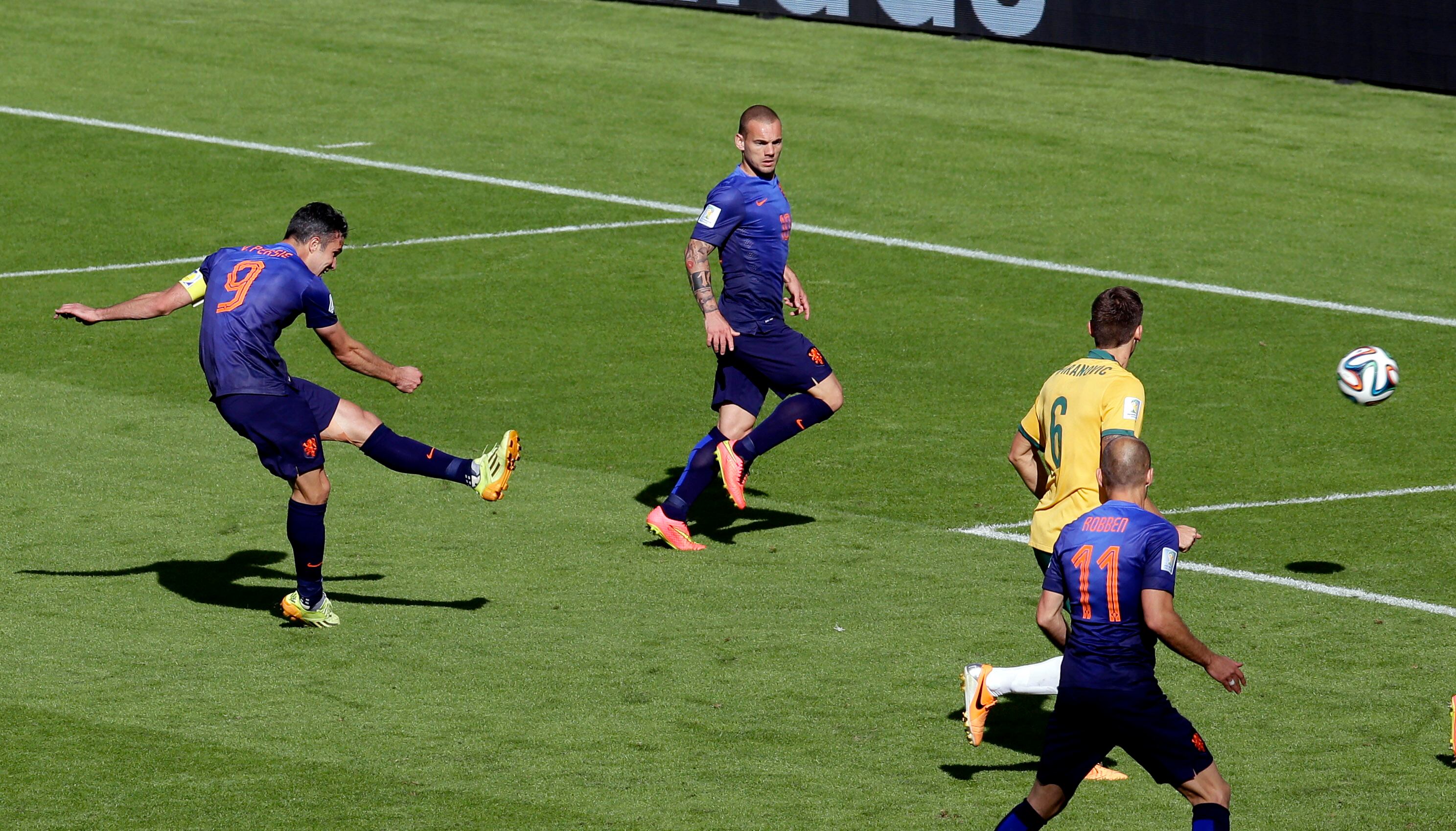 Los holandeses Arjen Robben y Robin Van Persie autores de un gol cada uno en la victoria 3-2 este miércoles sobre Australia, se unieron al alemán Thomas Müller al frente de la tabla de goleadores con tres goles.