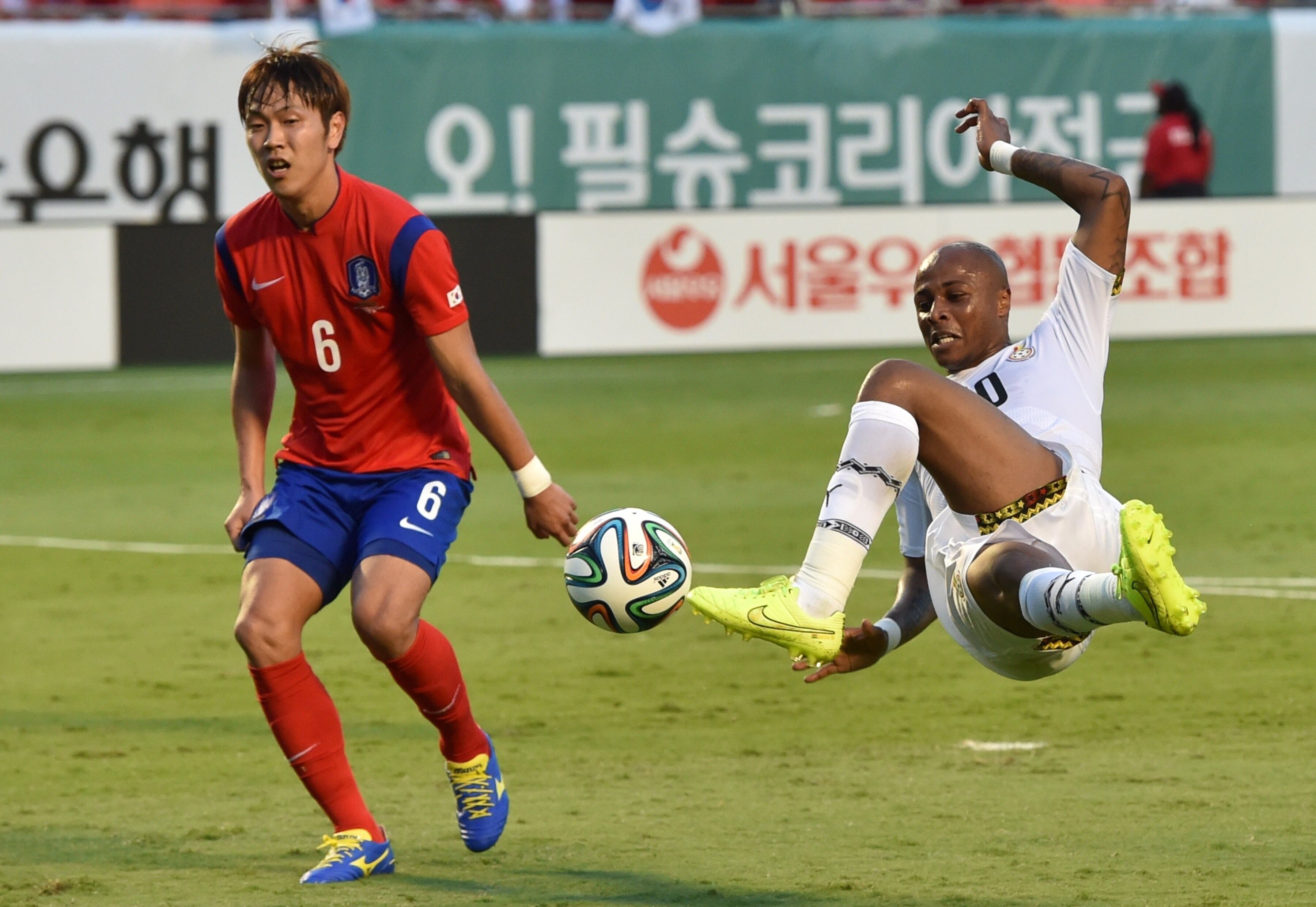 La selección de fútbol de Ghana, con un hat-trick del delantero Jordan Ayew, goleó 4-0 a la de Corea del Sur en el último partido amistoso de preparación de ambos combinados nacionales para el Mundial de Brasil 2014.