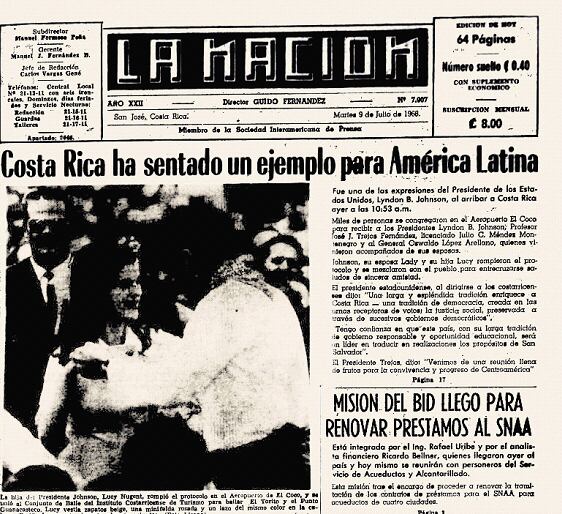 Johnson, su hija Lucy y su esposa Lady Bird, “en un hermoso gesto de confraternidad, se mezclaron despreocupadamente con los miles de costarricenses que les rodeaban”, cuenta La Nación.