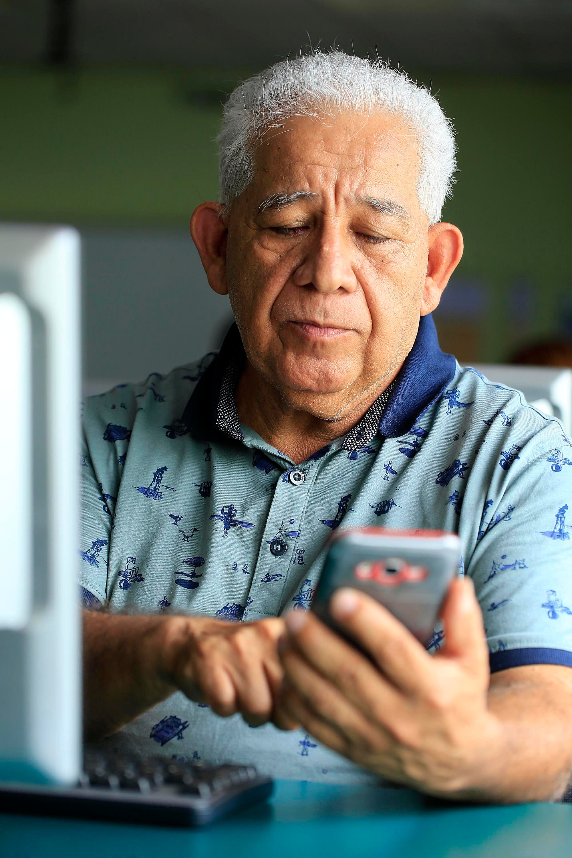 Este hombre, nacido en la provincia de Limón, pero cuya vida construyó en San José, es uno de los estudiantes más regulares de los cursos libres impartidos por el Programa de Gerontología de la UNED, entre los que destacan Inglés, Computación, Historia del Arte, Tai Chi y, más recientemente, Uso del teléfono inteligente.