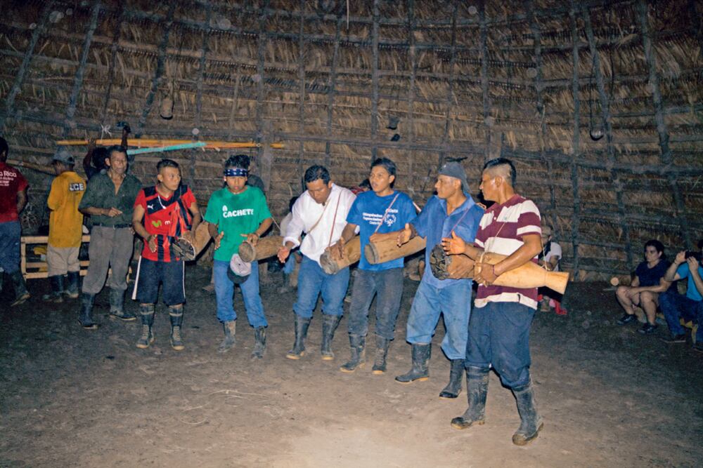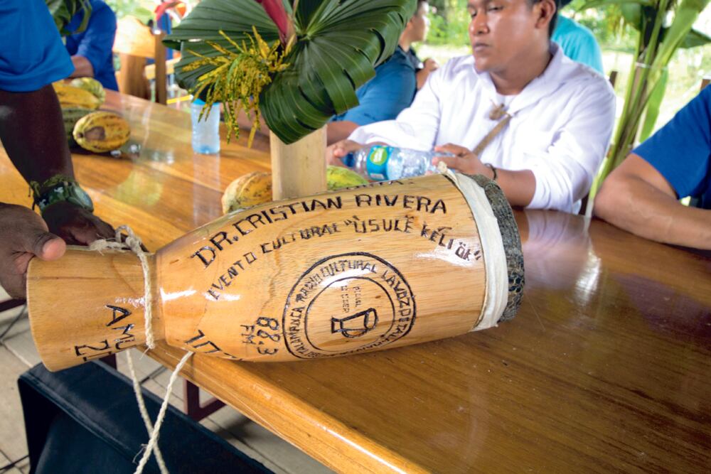 Una vez en el centro, donde todo pasaba, bajaron los víveres que llevaba Costa Rica Azul, y cada quien se dispersó. El acto inaugural lo realizó un grupo de indígenas junto al chamán. Tocaron lentamente los yembés (tambores) que estaban cubiertos con piel de serpiente.