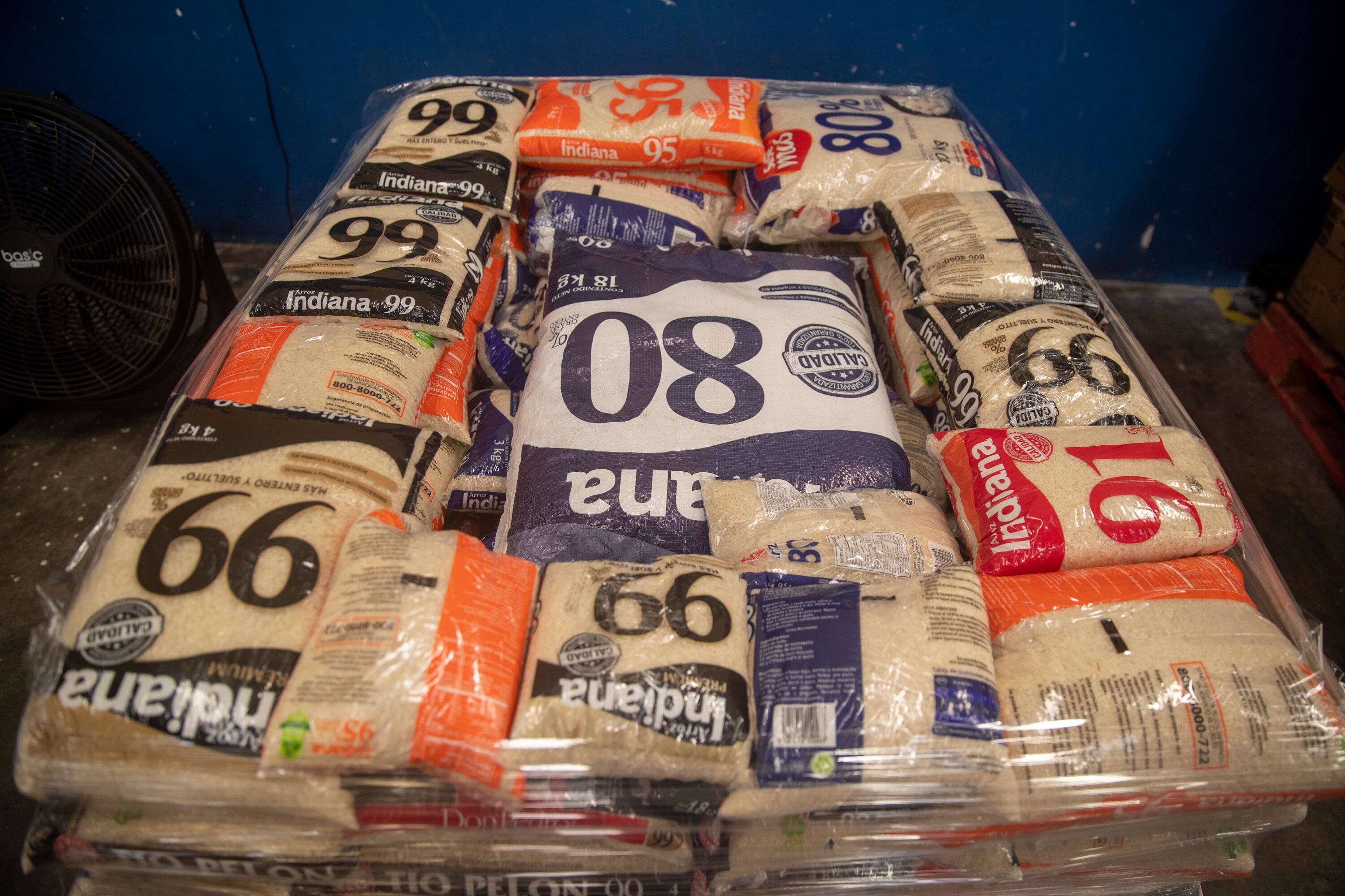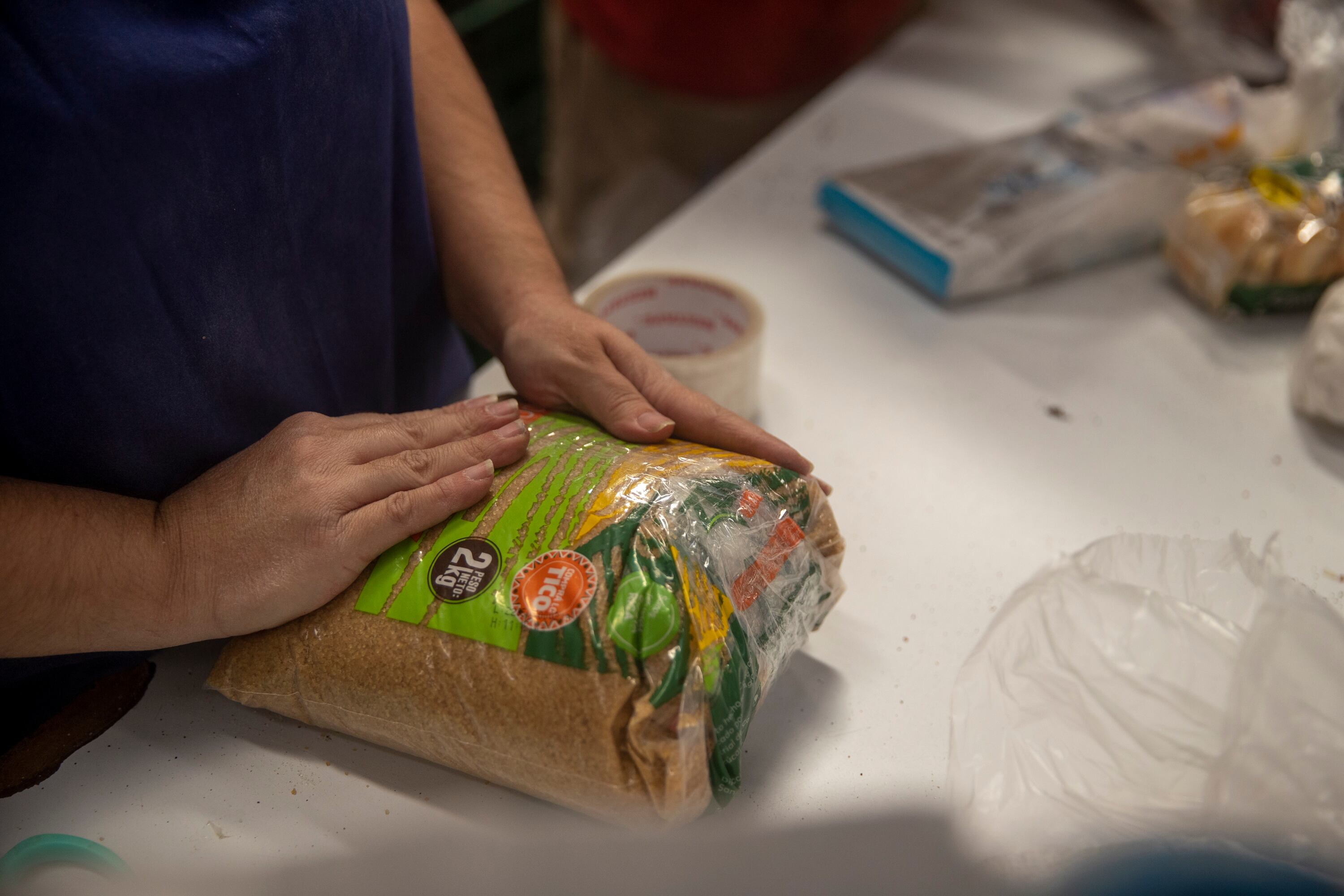 Por otro lado, están quienes revisan fechas de expiración para descartar lo vencido y también están los colaboradores que reparan bolsas de arroz, frijoles o azúcar que tienen algún agujero y que se salvan con un trozo de cinta.